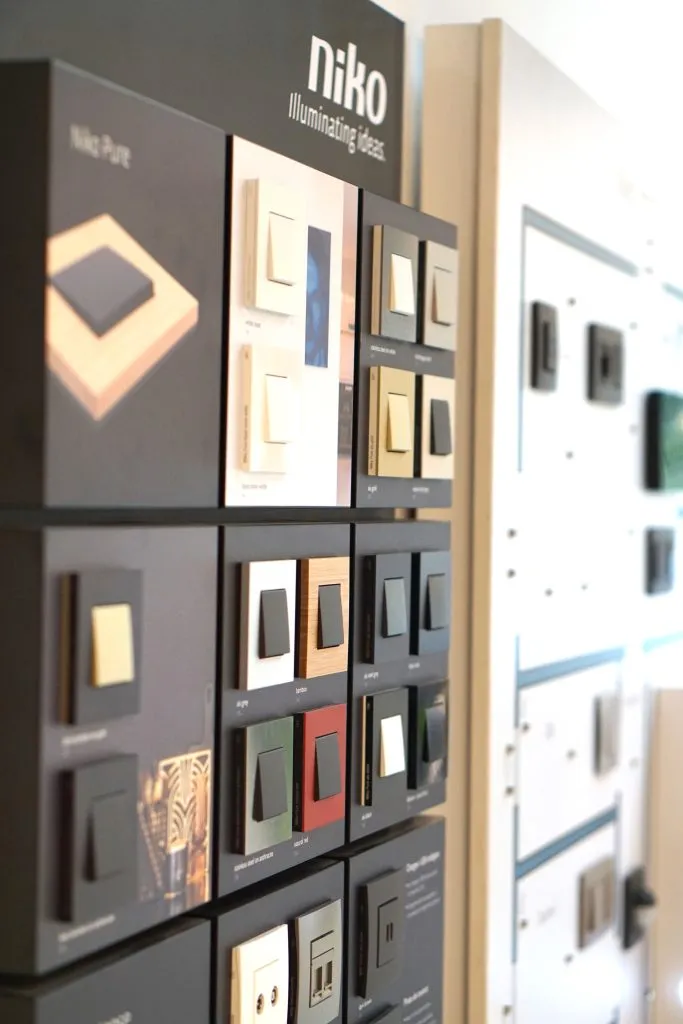 La dernière étape avant le contrôle d’une installation électrique passe par la pose d’interrupteurs et de prises de courant dans les différentes pièces. Ces dispositifs sont à la fois nécessaires pour le bon fonctionnement du système, mais sont aussi une touche esthétique dans les intérieurs. Pour cela, nous travaillons avec un partenaire de renom : Niko. Celui-ci nous garantit un matériel de qualité et propose une large gamme allant des finitions les plus simples au plus design.